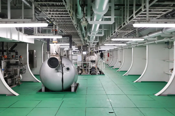 “蘇海1號”的投產(chǎn)運(yùn)營,標(biāo)志著連云港市深遠(yuǎn)海養(yǎng)殖邁入了新階段。養(yǎng)殖工船總長249.8米、型寬45米、型深21.6米,排水量13.2萬噸,配備15個(gè)封閉式養(yǎng)殖艙,有效養(yǎng)殖水體達(dá)8.3萬立方米。養(yǎng)殖工船通過全船智控系統(tǒng)實(shí)現(xiàn)水體、供氧、飼喂的精準(zhǔn)調(diào)控,24小時(shí)內(nèi)可完成16次水體交換,為三文魚創(chuàng)造低應(yīng)激、高標(biāo)準(zhǔn)的生長環(huán)境,其獨(dú)特的游弋式生產(chǎn)能力,可主動追尋黃海冷水團(tuán)等適宜水域,有效規(guī)避臺風(fēng)、赤潮等自然災(zāi)害風(fēng)險(xiǎn)。在產(chǎn)業(yè)鏈延伸方面,工船構(gòu)建了“船載加工、岸海聯(lián)動”的一站式工程體系,從起捕到冰鮮、速凍加工全程可控,結(jié)合高效冷鏈物流,最快24小時(shí)即可從養(yǎng)殖源頭直達(dá)餐桌。