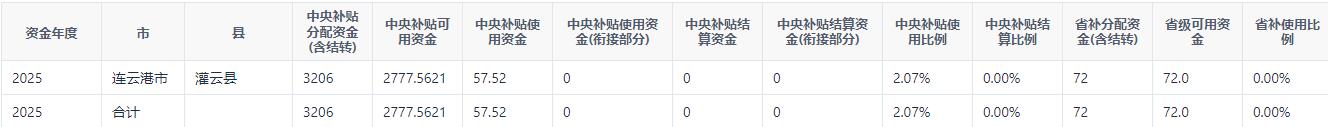 2025年度8月30日灌云縣農機購置補貼資金使用進度表
